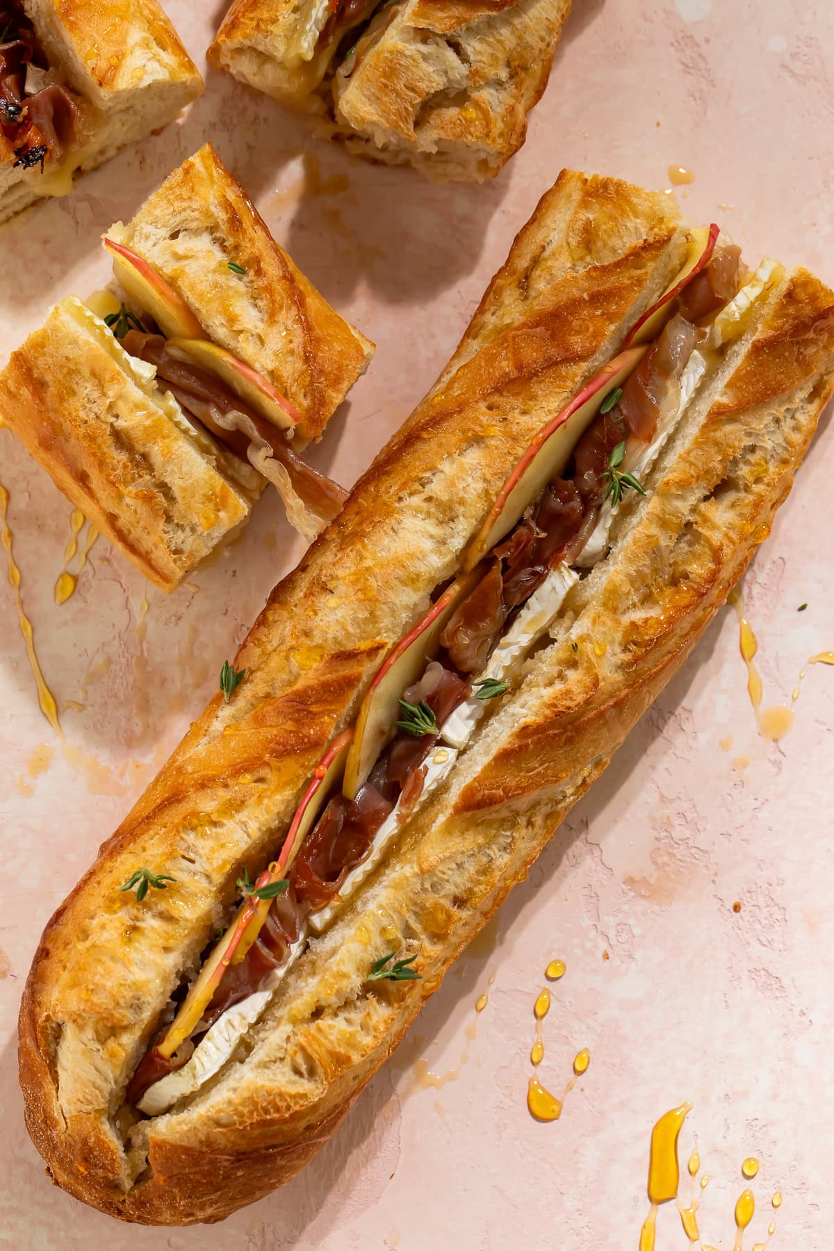Brie Prosciutto Apple and Honey Stuffed Baguette